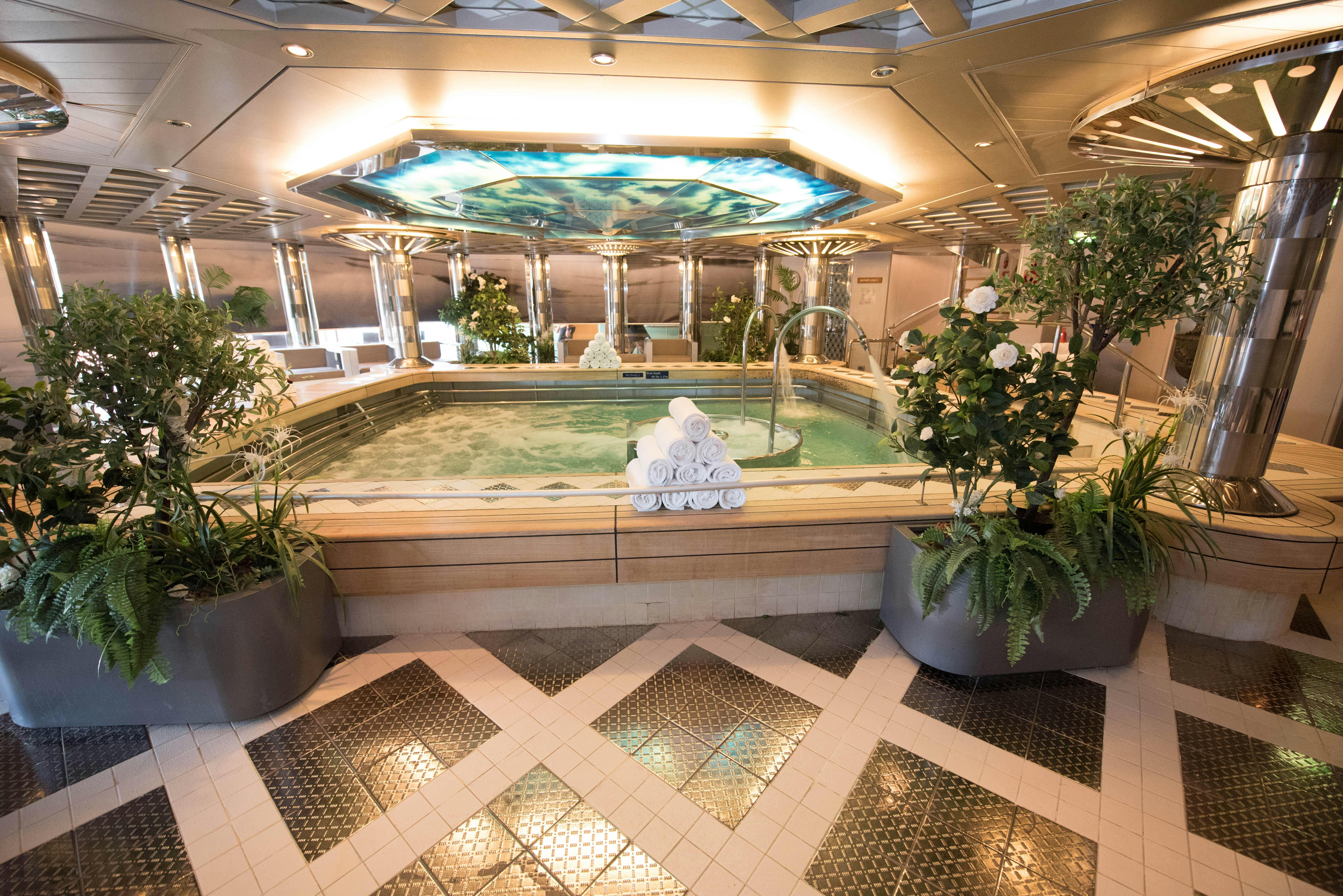 "Few cruise ship spas are as consistently well done as the Greenhouse Spas aboard Holland America Line. Perched high atop the vessel, these gorgeous spas offer large hydrotherapy pools, heated ceramic loungers bordered by walls of floor-to-ceiling glass, aromatic steam rooms, and a multitude of treatment options for individuals and couples. A forward-facing fitness center overlooks the bow of the ship and a welcoming salon round out the line's solid spa offerings."